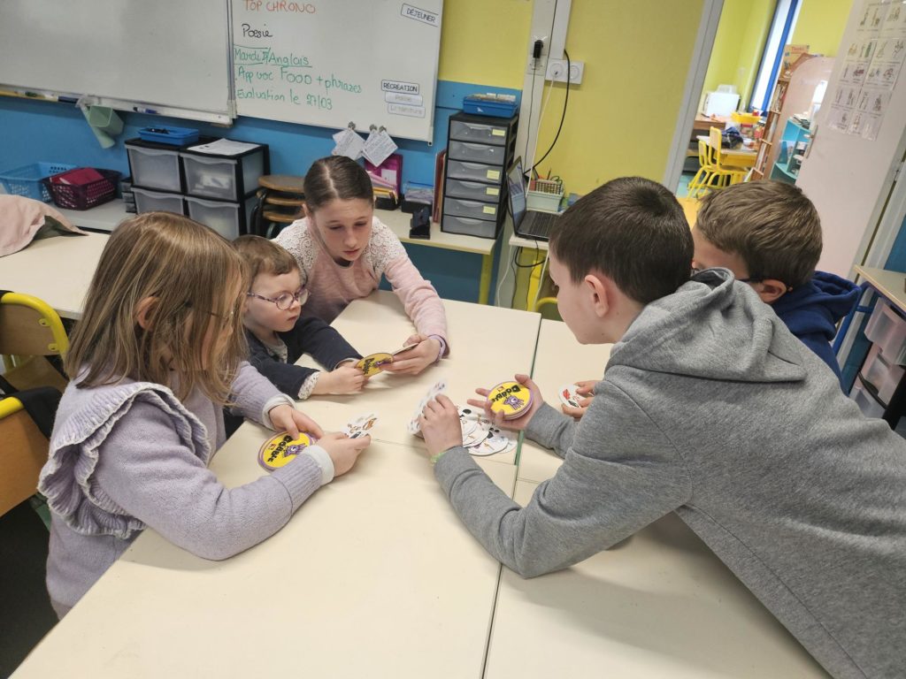 Dans notre nouveau projet, les enfants sont davantage acteurs, en effet, lors du temps fort de rentrée, avec parrains-marraines et filleul(e)s, les enfants ont imaginé des idées de projet. Nous l’avons mis en place ce matin: matinée jeux de société où grands et petits s’entraident.